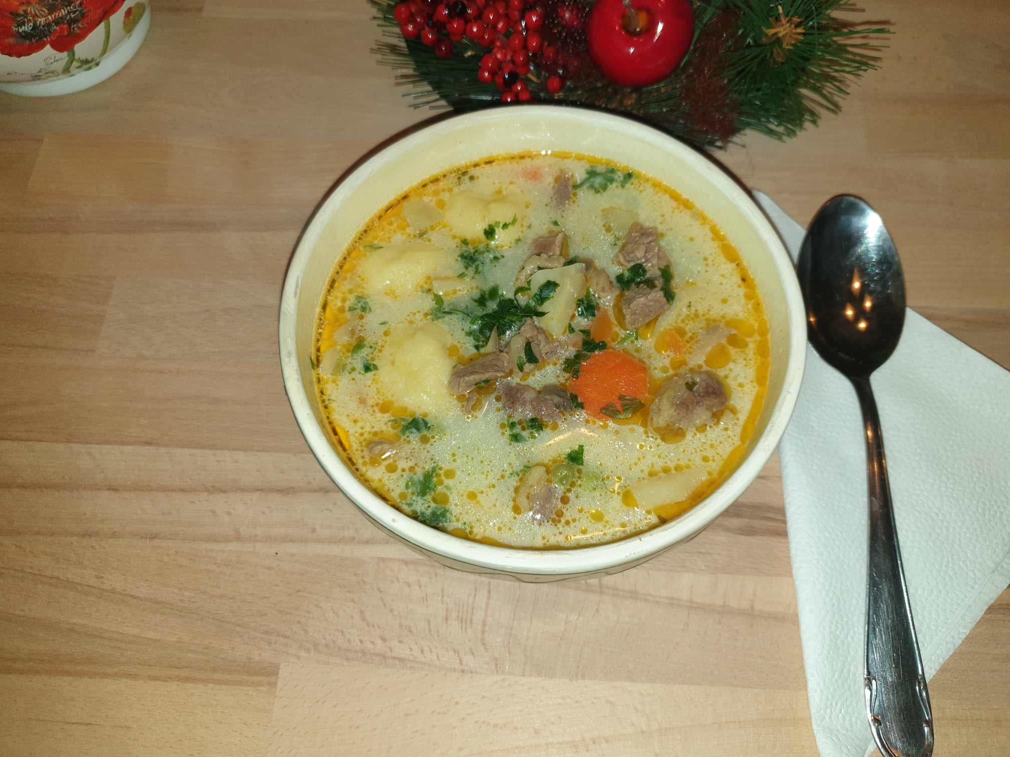 Beletesszük a levesbe.